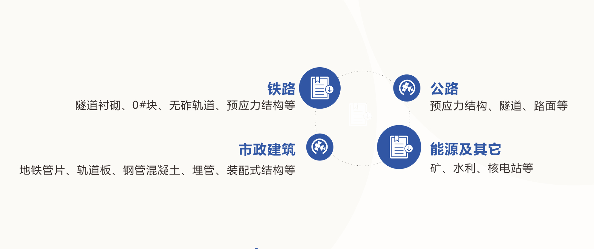 市政建筑:地鐵管片、軌道板、鋼管混凝土、埋管、裝配式結構等
